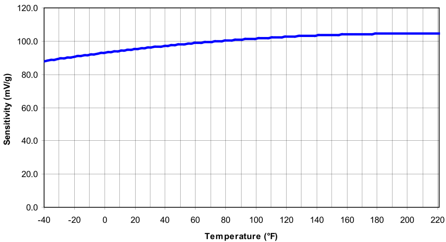 감도에 대한 온도 영향: (일반적인 곡선은 -40°C에서 +105°C까지의 감도 변화를 보여줍니다).