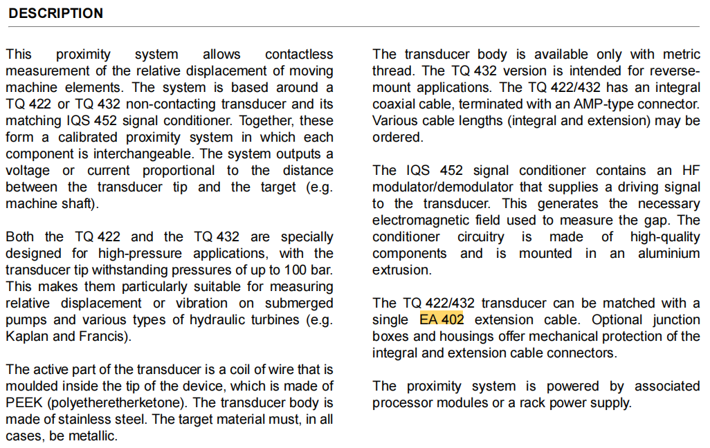 4미터는 산업 현장에서 프로브와 프리앰프 설치 위치 사이에서 가장 자주 발생하는 거리입니다. 이 표준 길이를 선택하는 것은 다음을 의미합니다.